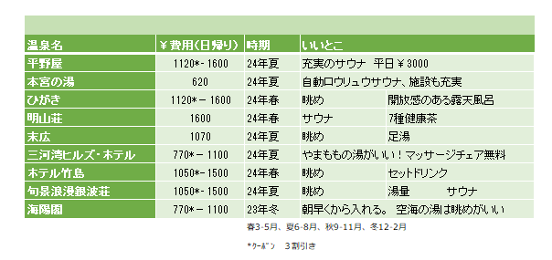 結果及び温泉一口メモ:Results & Notes