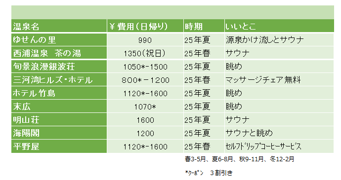 結果及び温泉一口メモ:Results & Notes